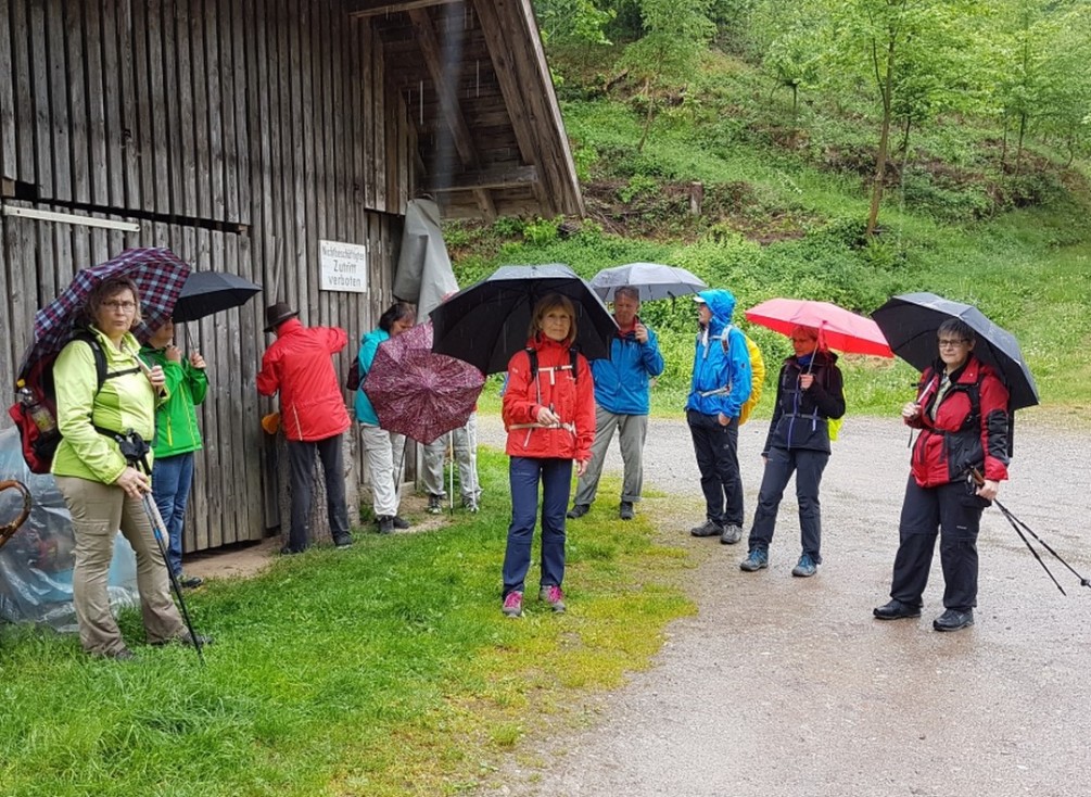 Martina Klett führte die 11 Wanderer bei Dauerregen ans Ziel. Teil II der Wanderung wird 2019 durchgeführt.