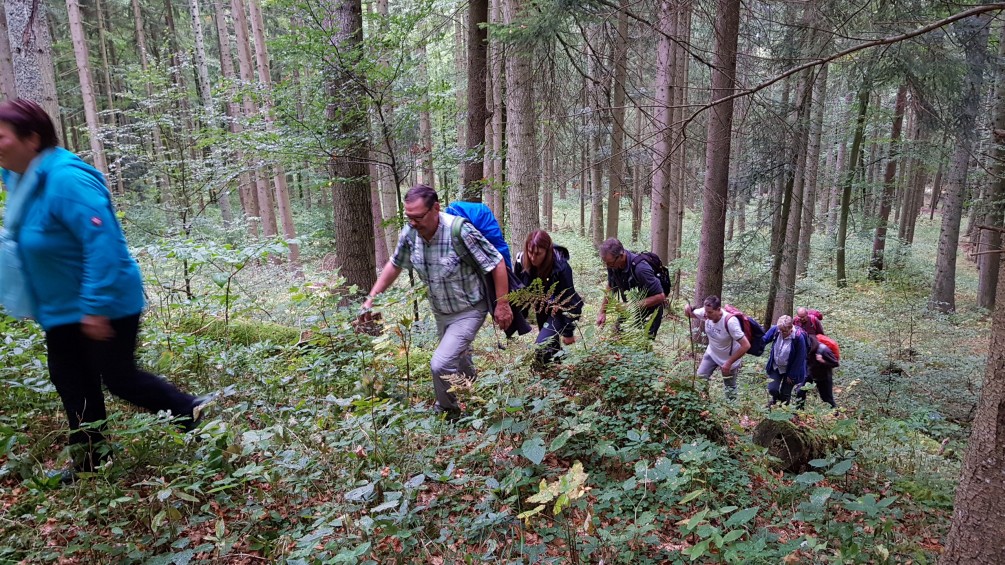 Es überraschte die Mitwanderer immer wieder, wie sie die Grenzlinie an Bächen entlang, durch wildes Gestrüpp, Steilabfälle hinauf und hinunter, quer durch Wald und Flur, aber auch auf gemütliche Wege führte.