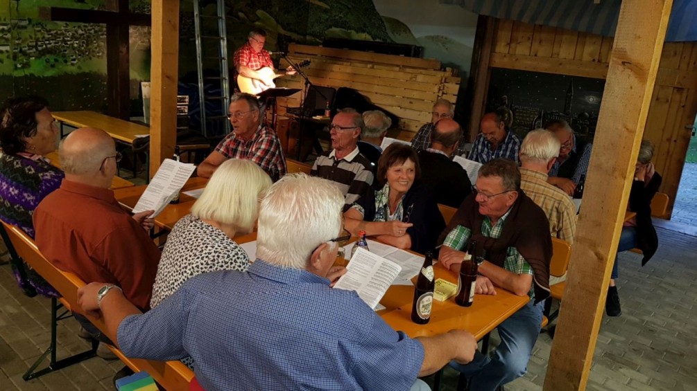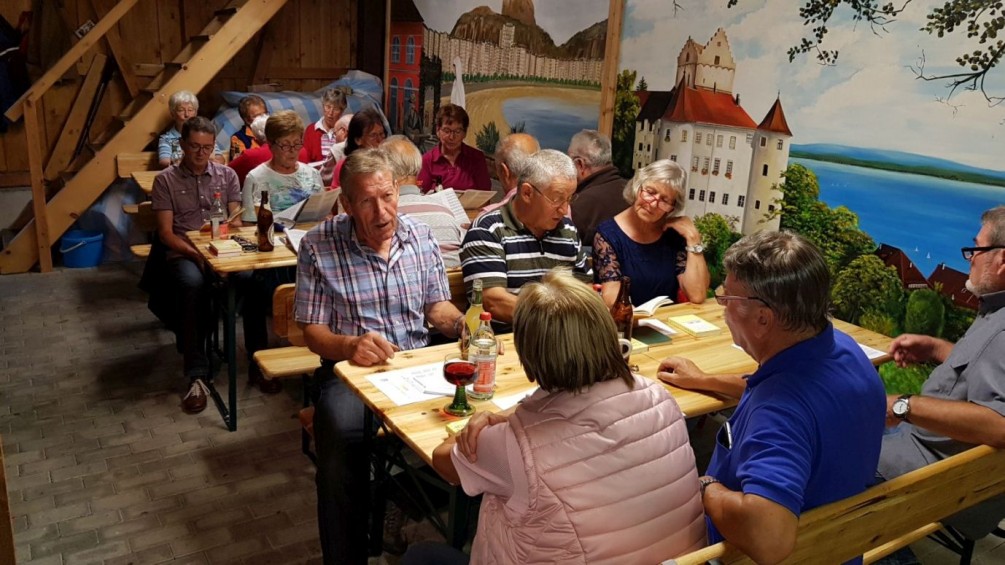 Mitglieder der Ortsgruppe Denkingen und die Sänger vom MGV singen gemeinsam Wanderlieder und verbringen einen geselligen Abend miteinander. Vielen Dank an Josef Schmidt und den MGV für die Organisation.