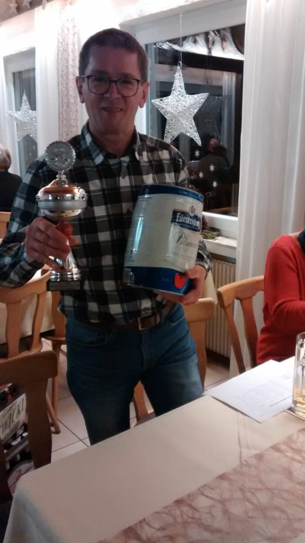 Überraschung vor Weihnachten. Beim Vereinspokalschießen am 16.12.2018 ist die Ortsgruppe mit Martina, Silvia, Edwin und Hubert angetreten. Mit knappem Abstand zu den Motorradfreunden (1.Platz) konnten wir den 2.Platz (mit Pokal und 5 ltr.Bier) erringen.