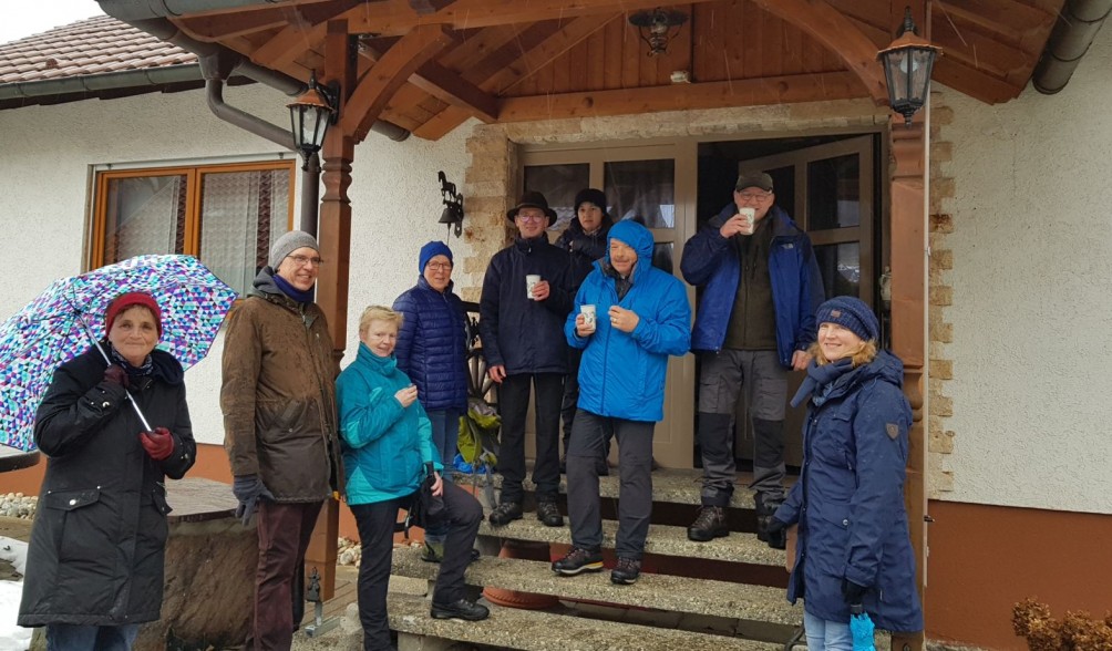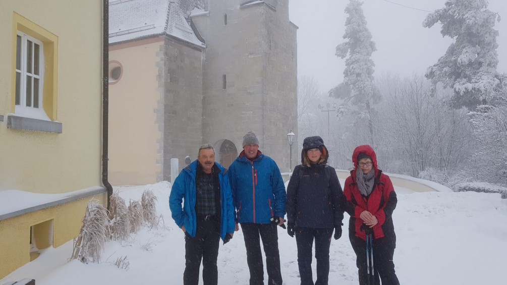 Bei wiedrigem Wetter haben sich 4 Wanderer über den Bahndamm-Wanderweg – Studentenweg – Stationenweg zum traditionellen Dreikönigstreffen der Ortrgruppen des Heuberg-Baar-Gau auf den Dreifaltigkeitsberg aufgemacht. Im Pilgersaal der Claretiner wurde das Wanderjahr mit einem Rahmenprogramm eröffnet. Weitere 6 Vereinsmitglieder haben sich auf dem Berg noch der Gruppe angeschlossen. Die Wandergruppe wurde von Martina Klett angeführt.