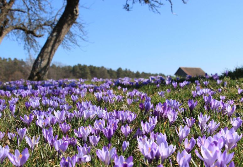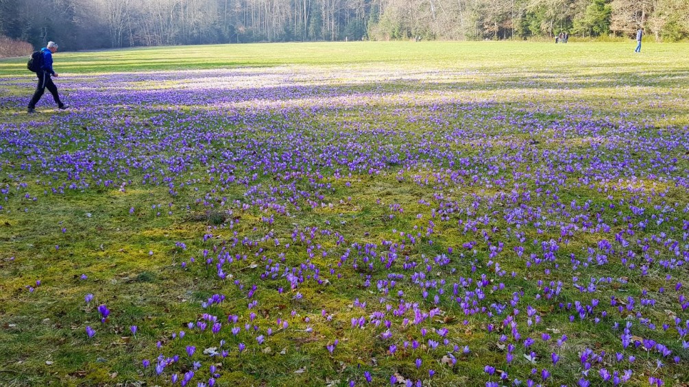 Das Naturschutzgebiet Krokuswiesen in Zavelstein bietet den Besuchern jährlich einen weitläufigen Blütenteppich wilder Krokusblüten.
