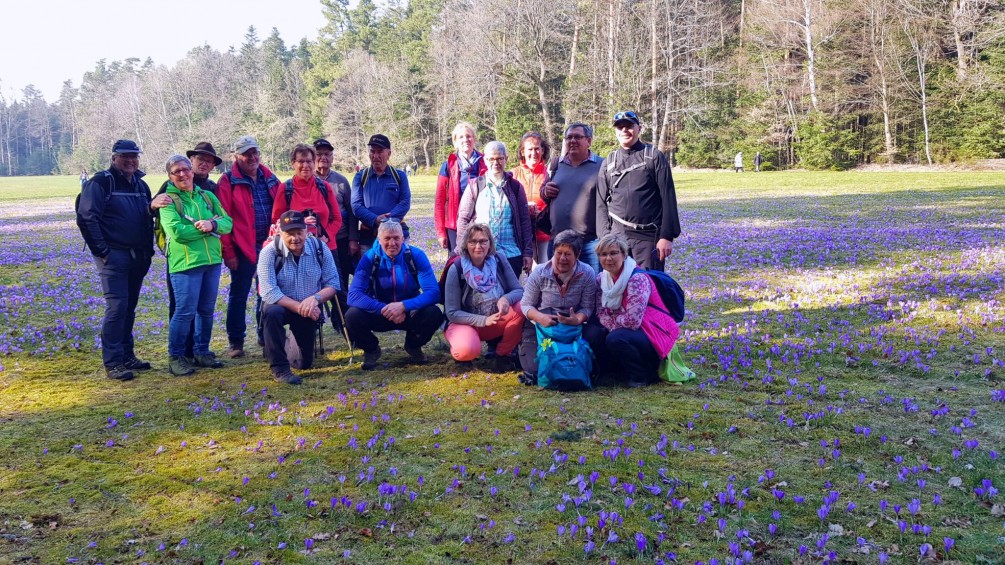 Dieses weithin bekannte Naturerlebnis konnten 17 Wanderer unserer Ortsgruppe unter Führung von Edwin Dreher erwandern und genießen. Startpunkt war der Wanderparkplatz bei Rötenbach. Auf der „AugenBlick-Runde“ führte die Wanderung nach Rötenbach, zum Zettelberg, weiter vorbei an Emberg durch die idyllische Wolfsschlucht. Die schönen Aussichten auf den Albtrauf mit Lemberg und Hohen Karpfen konnten wir mangels Fernsicht leider nicht geniesen. In Zavelstein führte unsere Tour zum Turm der Ruine mit herrlichem Rundblick und weiter zu den Wiesen voller Krokusblüten.