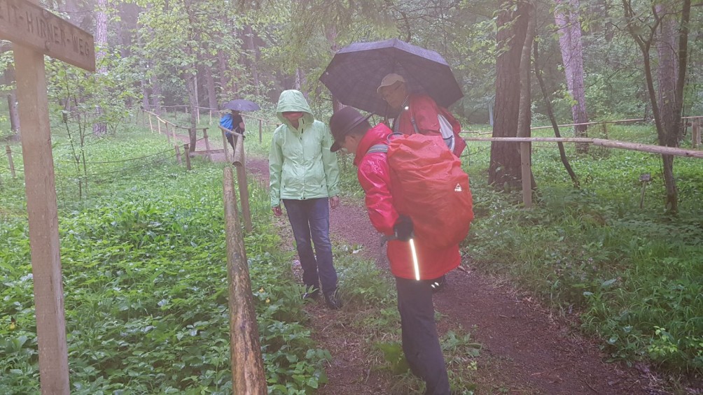 Die Wanderstrecke führte vom Sportplatz Hattingen zum Aussichtspunkt Wildhag, vorbei an der Doline Michelsloch zum Höwenegg (mit Aussicht in den Krater des Hegauvulkans). Nach einem Vesper auf dem Grillplatz über Mauenheim, wanderten wir durch den Ort ins Rehletal mit seinen Orchideen und weiteren seltenen Pflanzen. Strömender Regen begleitete uns auf diesem Streckenabschnitt und bis zum Ausgangspunkt unserer Wanderung. Die Schlußeinkehr machten wir im Hirsch in Wurmlingen.