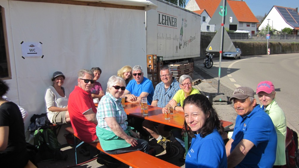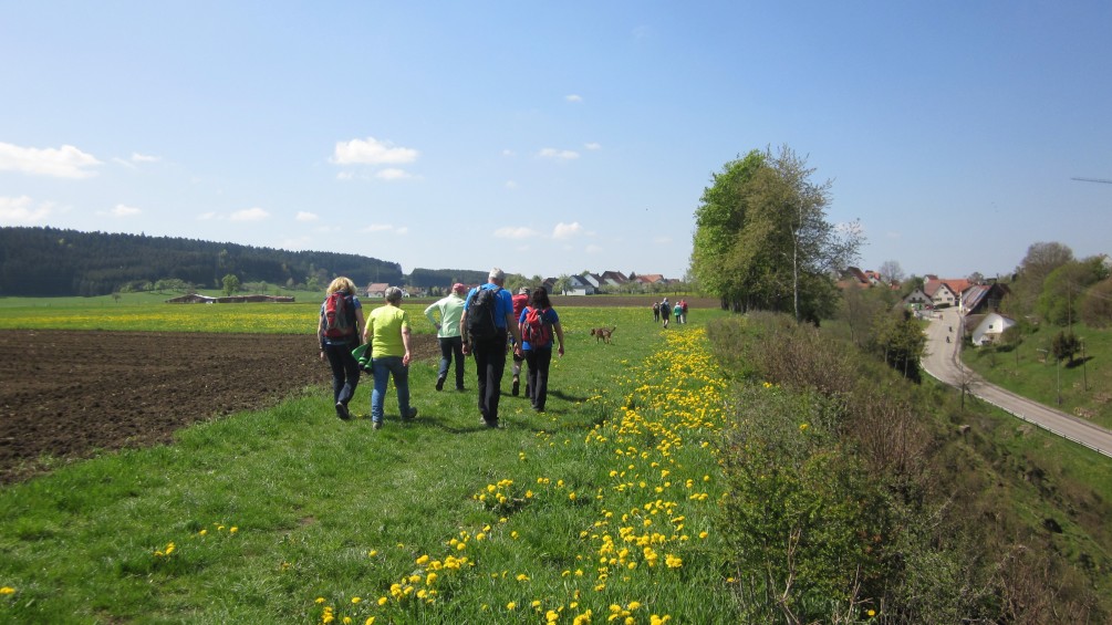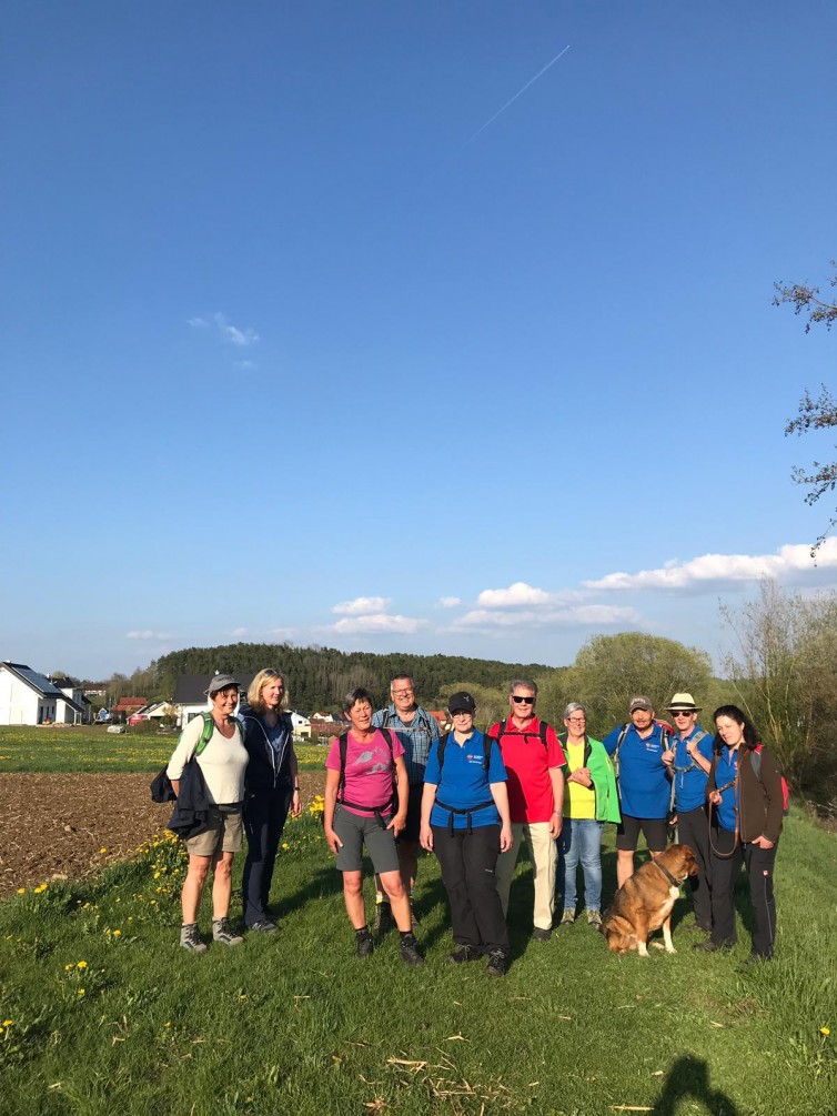 Die 13 Teilnehmer erlebten mit dem Wanderführer Hubert Schirmer eine schöne Wanderung bei tollem Wetter und schönen Ausblicken. Einkehr bei den Wanderfreunden in Rotenzimmern und auf dem Rückweg beim Maihock der Feuerwehr in Täbingen.