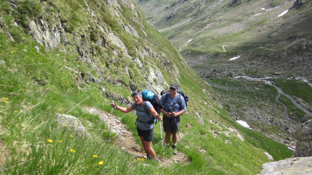 Am 2. Tag wanderten wir hinunter durchs Ochsental Richtung Stausee (2049m). Mit linksschwenk ging es weiter ins Klostertal mit Aufstieg über den Litzner Sattel (2744m) zur Saarbrücker Hütte (2538m) mit weiterer Übernachtung. Der Hüttenabend wurde wieder in geselliger Runde verbracht.