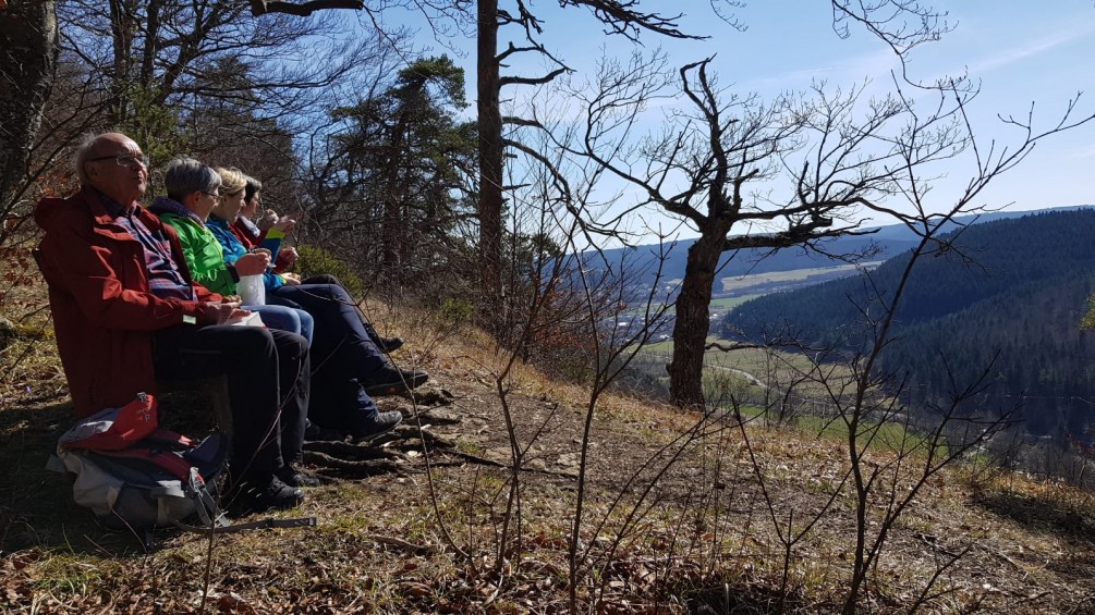 Auf die Suche nach den ersten Frühlingsboten ging es an diesem sonnigen Sonntag für 13 Wanderer unter Führung von Edwin Dreher und Hubert Schirmer ins Lippachtal. Vom dortigen Wanderparkplatz ging es ein kurzes Stück entlang der Lippach und über die Wolfensteige hinauf zur ehemaligen Burg Walterstein. Auf der Höhe wanderten wir vorbei an Kolbingen zum Aussichtpunkt Rappenfels (mit Mittagsrast).Weiter ging es Richtung Mühlheim und wieder talwärts zur Wulfbachquelle (mit vermessenen 6583 Metern die zweitlängste Höhle der Schwäbischen Alb nach dem Blauhöhlensystem). Auf dem Rückweg durch das Lippachtal konnten wir noch ganze Märzenbecher-Blütenteppiche bewundern.Schlußeinkehr war in der Gaststätte im Hirsch-Erlebniswald.
