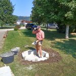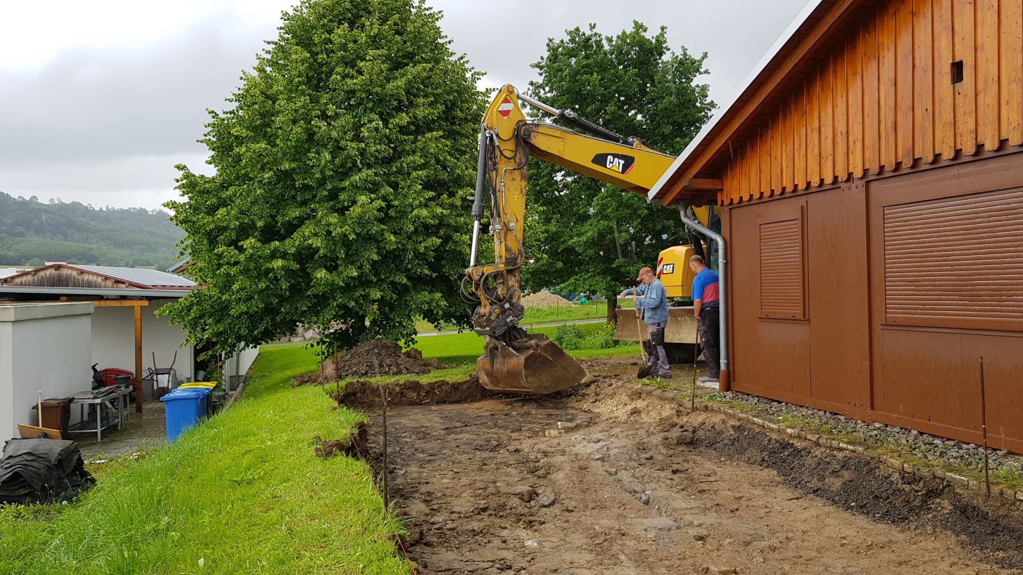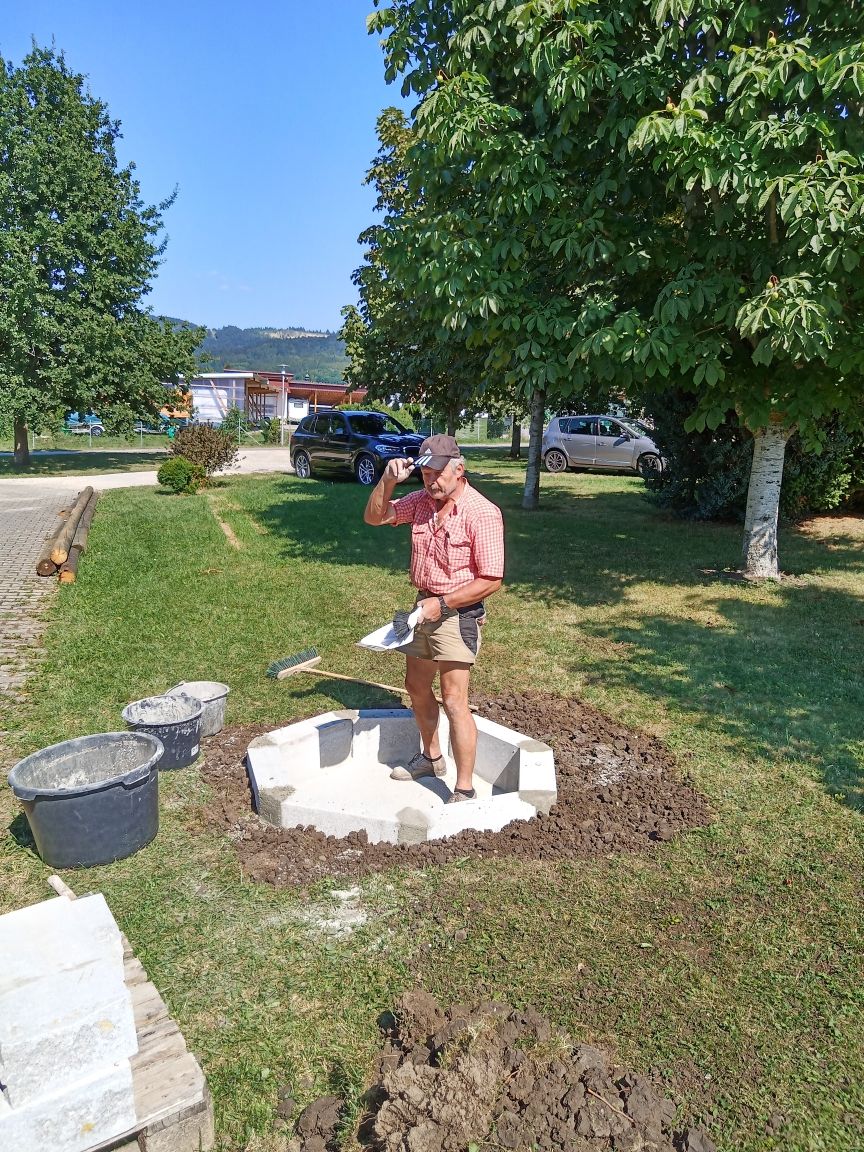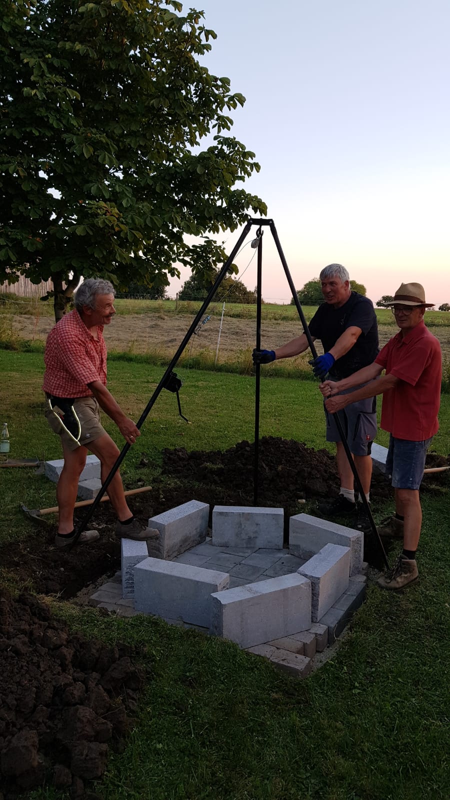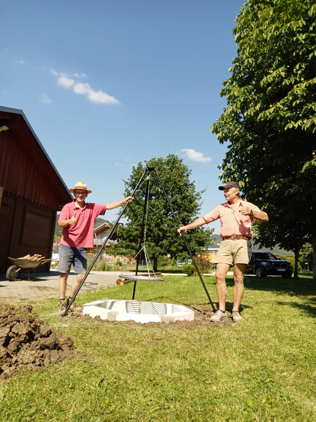 Den Schwung vom Bouleplatzbau wurde ausgenutzt, um an der Albvereinshütte eine Grillstelle zu errichten. Den dazugehörigen Dreibeingrill wurde fachmännisch von Franz hergestellt. Die Einweihung erfolgte in kleiner Runde mit einer Delegation des MGV.