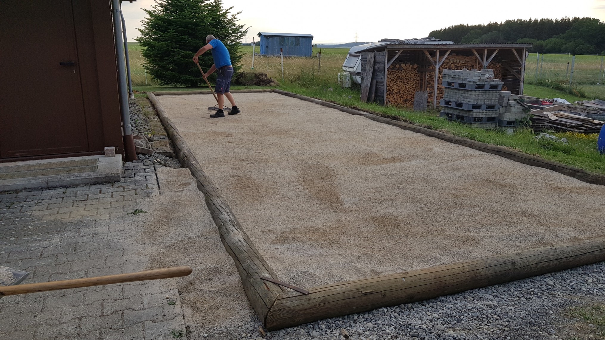 So wuchs die Idee, einen eigenen Platz zu bauen und man fand neben der Albvereinshütte einen geeigneten Standort, der auch von der Vorstandschaft mitgetragen wurde. Von einer kleinen Gruppe und Unterstützern wurde im Juni und Juli 2020 der Platz hergestellt und wird seit August regelmäßig am Montag bespielt. Interessierte sind jederzeit willkommen.