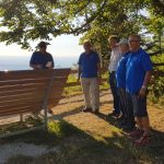 Die Bank sollte eigentlich vor Beginn der Wandersaison vorgestellt werden, was jedoch wegen der Corona-Lage verschoben werden musste. Edwin Dreher führte aus, dass die Organisatoren der Ü-65-Gruppe Brehm, Fetzer und Mattes die geniale Idee an ihn herantrugen, eine Wellenliege am exponierten Rastplatz Kreuzsteige mit seinem imposanten Panoramablick zu installieren. Sie spendeten das Material für die Sitzfläche, stellten das Möbelstück her und installierten es. Martin Schnee mit der Firma MTS stieg gleich mit ins Boot, indem sie das Metallgestell fertigte und stiftete. Die Genehmigung erfolgte über und die Gemeinde.