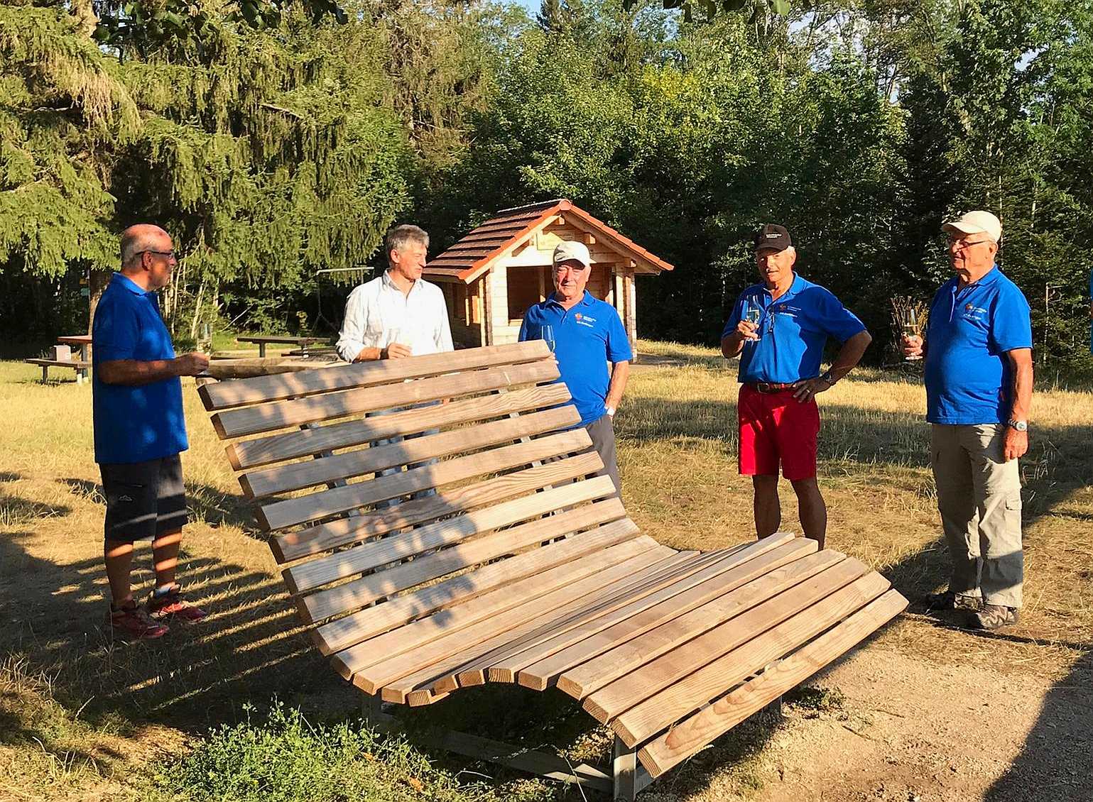 Unser Vorsitzender Edwin Dreher drückte seine Anerkennung für das gelungene Projekt aus und bedankte sich ganz herzlich bei den Idealisten für ihr Engagement und ihre Spenden. Zusammen wurde die neue Wellenliege mit einem Glas Sekt „begossen“. Die Feier fand im anschließenden kameradschaftlichen Grill-Abend des Albvereins erst nach Anbruch der Dunkelheit ihren Abschluss.
